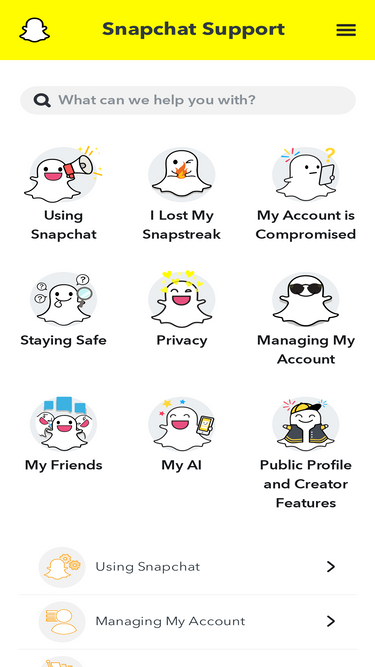 Snapchat Support I Need Help : Marco 1h Replying To I Lost My Potatos While Sending A Streak Photo Dgp Snapchat Support Snapchatsupport 1h Thanks For Reaching Out We Re Happy To Help Please Go To Sprlyhelp And Select My : On android, the scroll to the support section and tap the i need help option.
